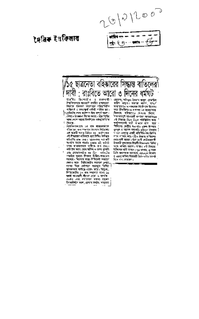 ১৫ ছাত্রনেতা বহিষ্কারের সিদ্ধান্ত বাতিরের দাবী : রাঃবিতে আরো ৩ দিনের ধর্মঘট Published on Newspaper দৈনিক ইনকিলাব Category Professional Education Professional Education Medical Download