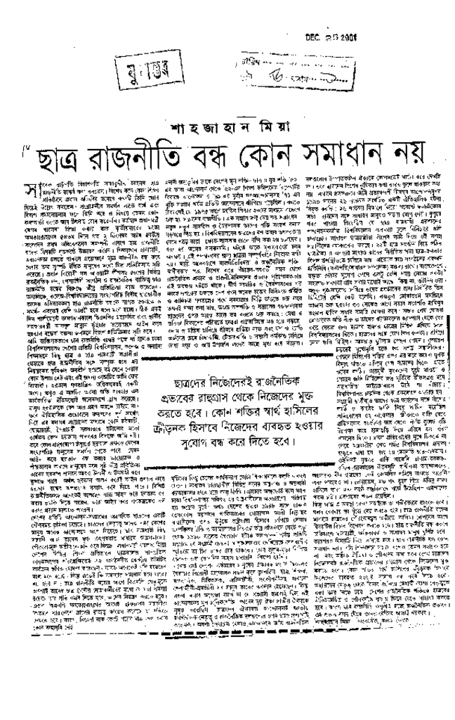 ছাত্র রাজনীতি বন্ধ কোন সমাধান নয় Published on Newspaper দৈনিক যুগান্তর Category Personal Opinion / Discussion / Commentary Download