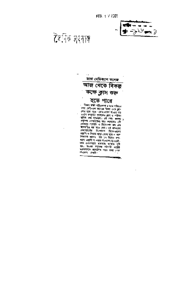 আজ থেকে বিকল্প কক্ষে ক্লাস শুরু হতে পারে Published on Newspaper দৈনিক সংবাদ Category Professional Education Professional Education Medical Download