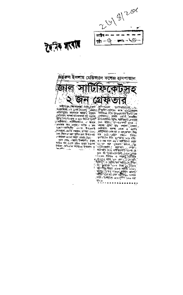জাল সার্টিফিকেটসহ ২ জন গ্রেফতার Published on Newspaper দৈনিক সংবাদ Category Professional Education Professional Education Medical Download