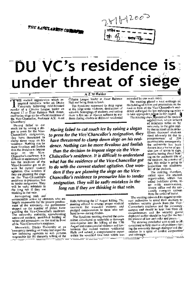 DU VC's residence is under threat of siege Published on Newspaper The Bangladesh Observer Category Professional Education Professional Education Medical Download