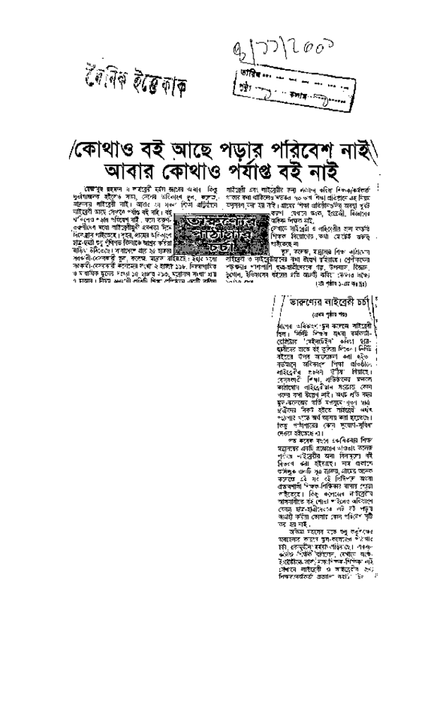 কোথাও বই আছে পড়ার পরিবেশ নেই আবার কোথাও পর্যাপ্ত বই নাই Published on Newspaper দৈনিক ইত্তেফাক Category Others Download