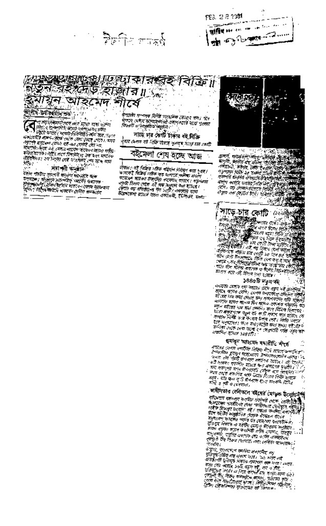 সাড়ে চার কোটি টাকার বই বিক্রি // নতুন বই দেড় হাজার // হুমায়ুন আহমেদ শীর্ষে Published on Newspaper দৈনিক জনকণ্ঠ Category Book Day Download
