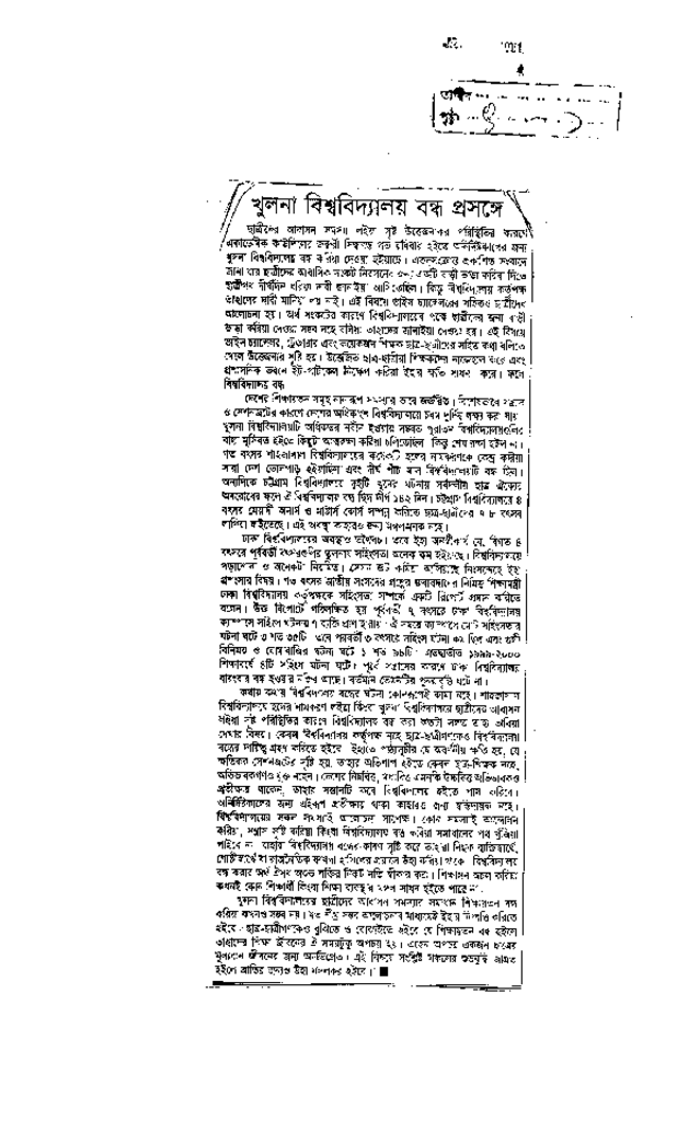 খুলনা বিশ্ববিদ্যালয় বন্ধ প্রসঙ্গে Published on Newspaper দৈনিক খবর Category Personal Opinion / Discussion / Commentary Download