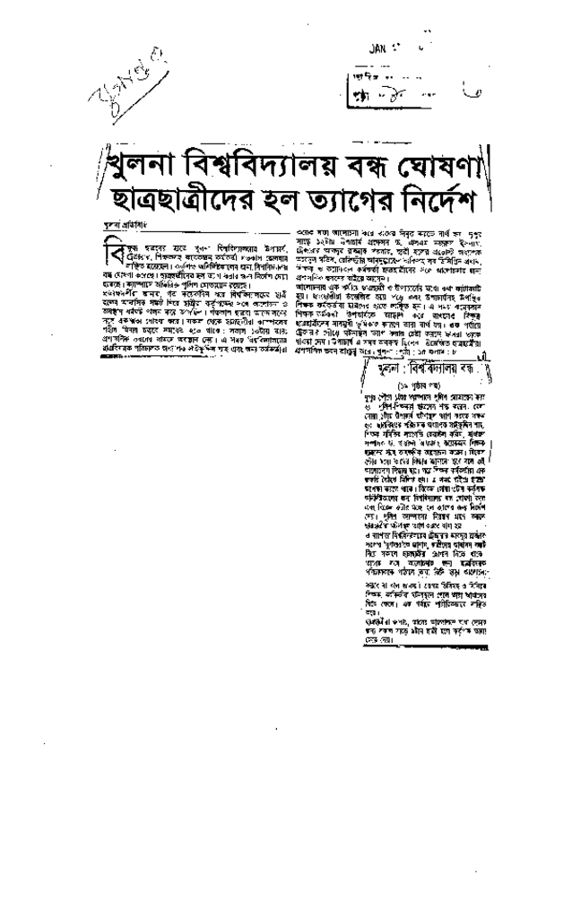 খুলনা বিশ্ববিদ্যালয় বন্ধ ঘোষণা ছাত্রছাত্রীদর হল ত্যাগের নিদের্শ Published on Newspaper দৈনিক যুগান্তর Category General Education Download