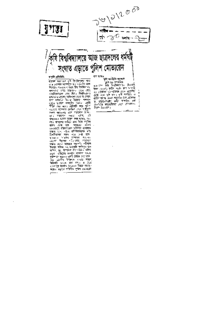 কৃষি বিশ্বদ্যিালয়ে আজ ছাত্রদলের ধর্মঘট সংঘাত এড়াতে পুলিশ মোতায়েন Published on Newspaper দৈনিক যুগান্তর Category Student Politics Download