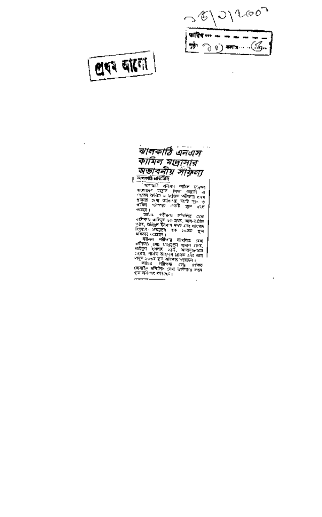 ঝালকাঠি এনএস কামিল মাদ্রাসার অভাবনীয় সাফল্য Published on Newspaper দৈনিক প্রথম আলো Category Madrasah Education Download