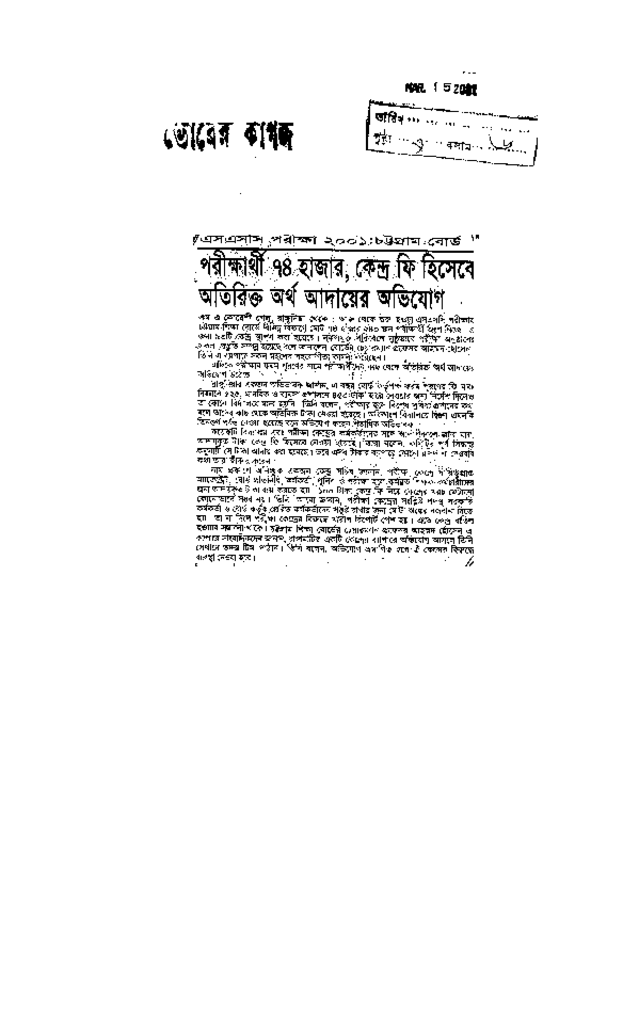 পরীক্ষার্থী ৭৪ হাজার, কেন্দ্র ফি হিসেবে অতিরিক্ত অর্থ আদায়ের অভিযোগ Published on Newspaper দৈনিক ভোরের কাগজ Category Public Examination Public Examination SSC Download