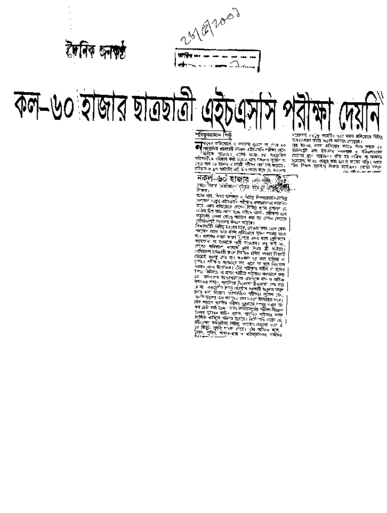 কল-৬০ হাজার ছাত্রছাত্রী এইচএসসি পরীক্ষা দেয়নি