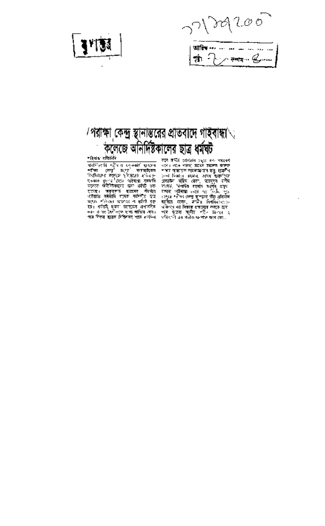 পরীক্ষা কেন্দ্র স্থানান্তরের প্রতিবিাদে গাইবান্ধা কলেজে অনির্দিষ্টকালের ছা্ত্র ধর্মঘট Published on Newspaper দৈনিক যুগান্তর Category Public Examination Download