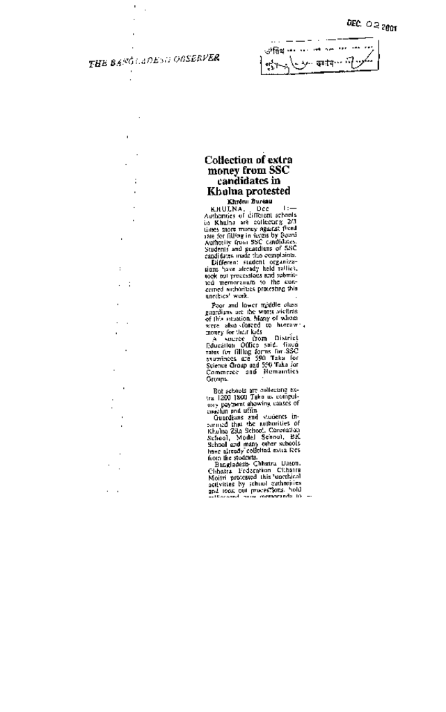 Collection of extra money from SSC candidates in Khulna protested Published on Newspaper The Bangladesh Observer Category Public Examination Public Examination SSC Download