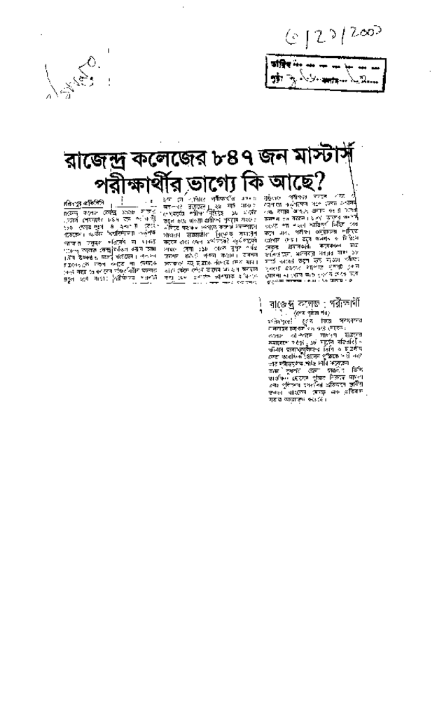 রাজেন্দ্র কলেজের ৮৪৭ জন মাস্টার্স পরীক্ষার্থীর ভাগ্যে কি আছে ? Published on Newspaper দৈনিক যুগান্তর Category Public Examination Public Examination Higher Education Download