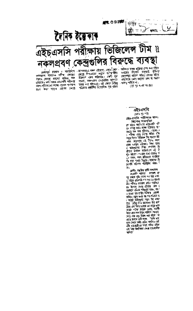 এইচএসসি পরীক্ষায় ভিজিলেন্স টীম // নকলপ্রবণ কেন্দ্রগুলির বিরুদ্ধে ব্যবস্থা Published on Newspaper দৈনিক ইত্তেফাক Category Public Examination Public Examination SSC Download