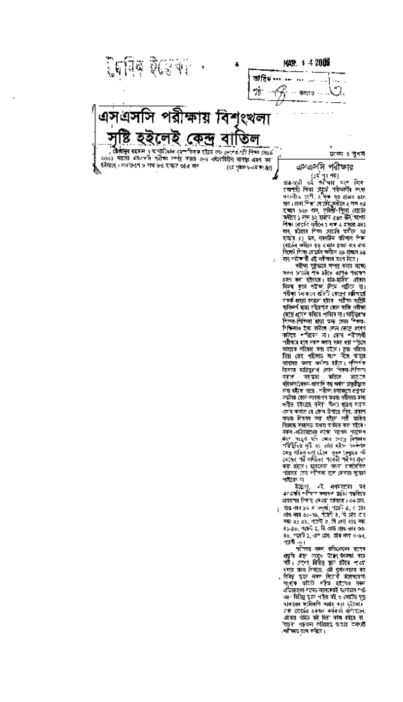 এসএসসি পরীক্ষায় বিশৃংখলা সৃষ্টি হইলেই কেন্দ্র বাতিল Published on Newspaper দৈনিক ইত্তেফাক Category Public Examination Public Examination SSC Download