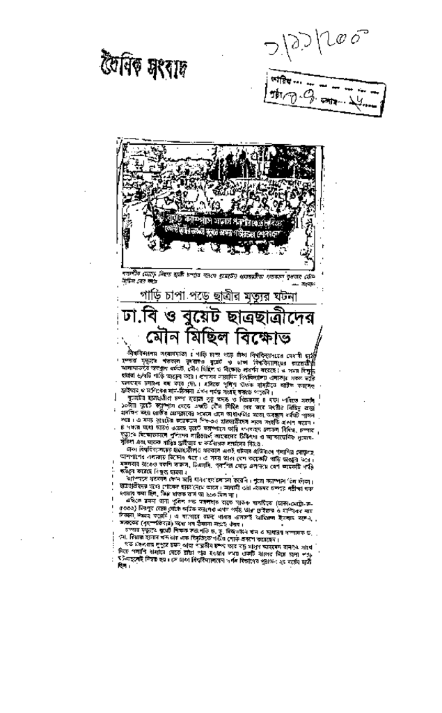 ঢা.বি ও বুয়েট ছাত্রছাত্রীদের মৌন মিছিল বিক্ষোভ Published on Newspaper দৈনিক সংবাদ Category Others Download