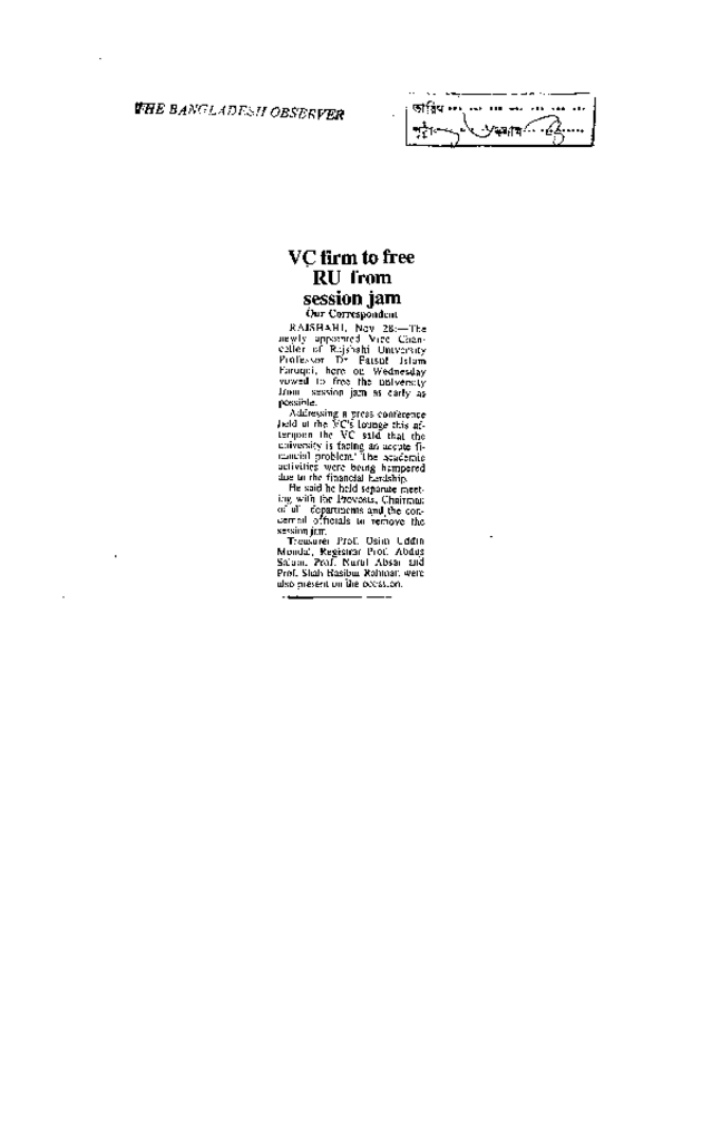 VC firm to free RU from session jam Published on Newspaper The Bangladesh Observer Category Personal Opinion / Discussion / Commentary Download Statistics 6 downloads