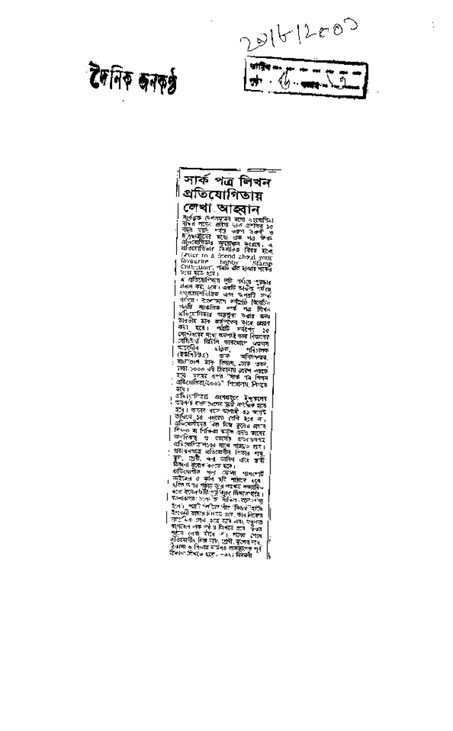 সার্ক পত্র লিখন প্রতিযোগিতায় লেখা আহবান