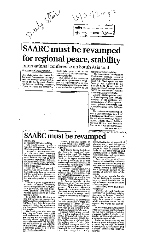 SAARC must be revamped for regional peace, satbility Published on Newspaper The Daily Star Category Others Download