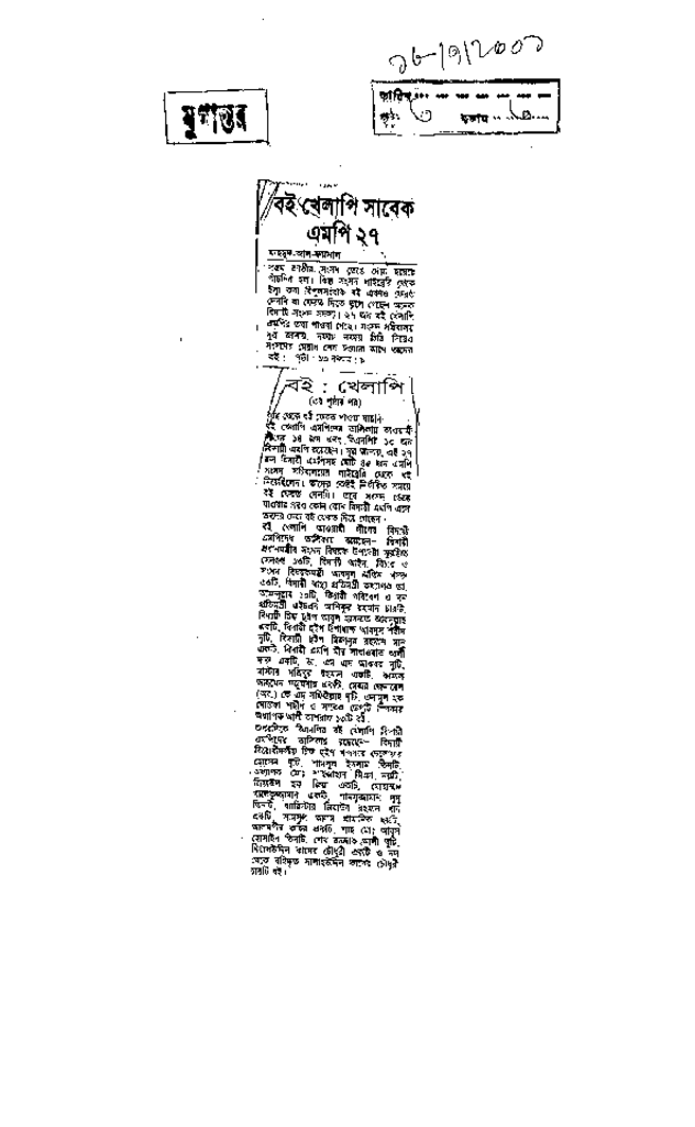 বই খেলাপি সাবেক এমপি ২৭ Published on Newspaper দৈনিক যুগান্তর Category Personal Opinion / Discussion / Commentary Download