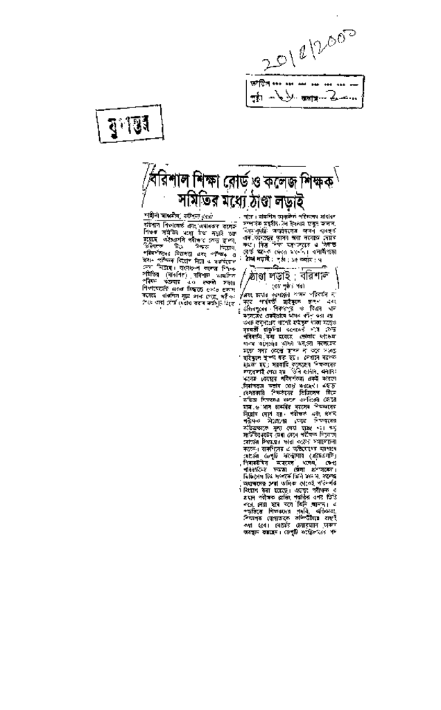বরিশাল শিক্ষা বোর্ড ও কলেজ শিক্ষক সমিতির মধ্যে ঠাণ্ডা লড়াই