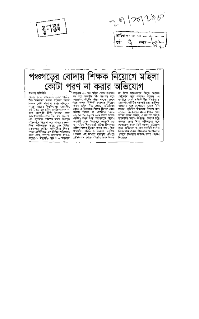 পঞ্চগড়েরর বোদায় শিক্ষক নিয়োগে মহিলা কোটা পুরন না করার অভিযোগ Published on Newspaper দৈনিক যুগান্তর Category Personal Opinion / Discussion / Commentary Download