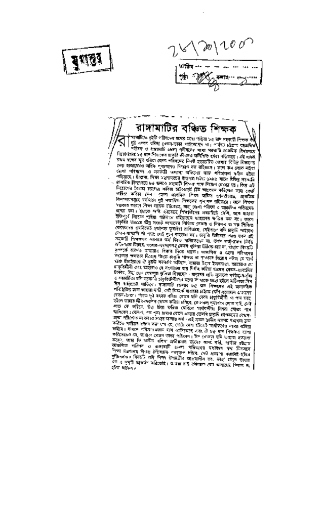 রাঙ্গামাটির বঞ্চিত শিক্ষক Published on Newspaper দৈনিক যুগান্তর Category Personal Opinion / Discussion / Commentary Download