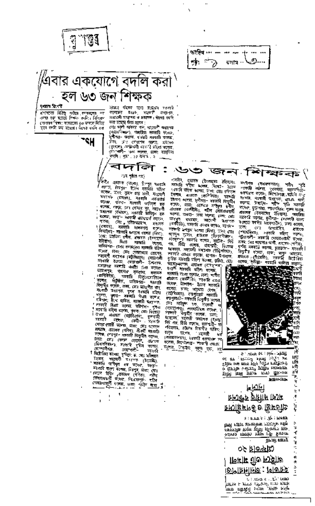 এবার একযোগে বদলি করা হল ৬৩ জন শিক্ষক Published on Newspaper দৈনিক যুগান্তর Category Education Policy / Education Commission Download