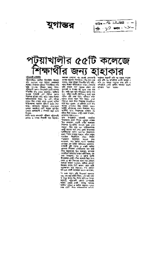 পটুয়াখালীর ৫৫টি কলেজে শিক্ষার্থীর জন্য হাহাকার