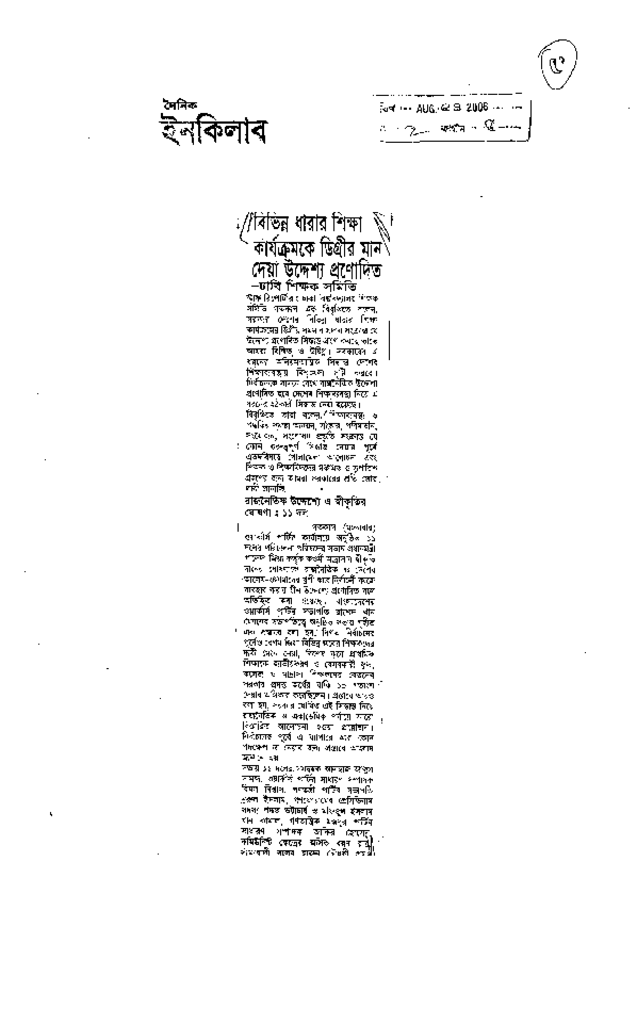 বিভিন্ন ধারার শিক্ষা কার্যক্রমকে ডিগ্রীর মান দেয়া উদ্দেশ্য প্রণোদিত Published on Newspaper দৈনিক ইনকিলাব Category Others Download