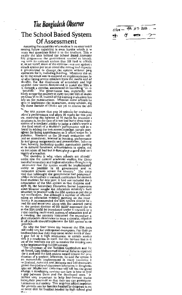 The school based system of assessment Published on Newspaper The Bangladesh Observer Category Others Download