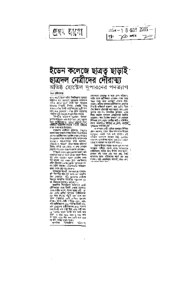 ইডেন কলেজে ছাত্রত্ব ছাড়াই ছাত্রদল নেত্রীদের দৌরাত্ম্য Published on Newspaper দৈনিক প্রথম আলো Category Student Politics Download