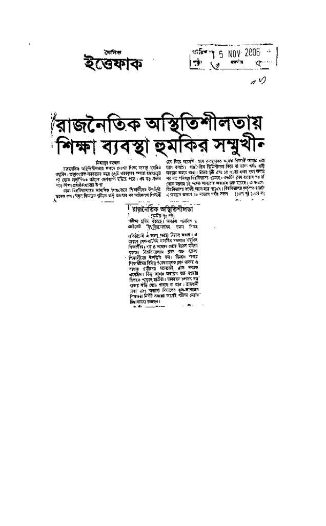রাজনৈতিক অস্থিতিশীলতায় শিক্ষা ব্যবস্থা হুমকির সম্মুখীন Published on Newspaper দৈনিক ইত্তেফাক Category Others Download