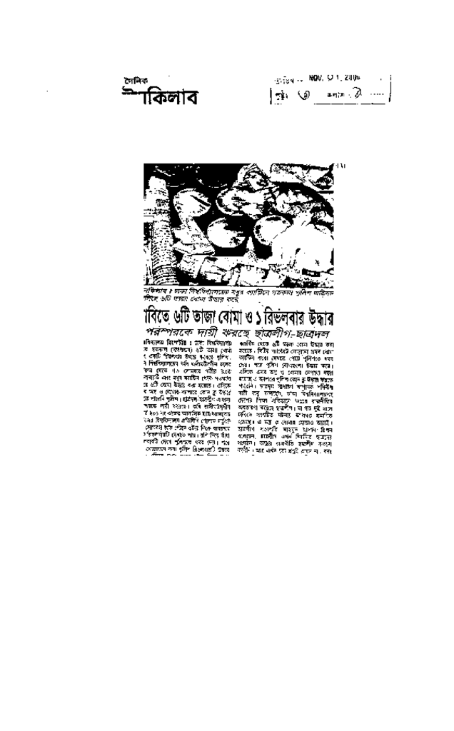 ঢাবিতে ৬টি তাজা বোমা ও ১ রিভলবার উদ্ধোর Published on Newspaper দৈনিক ইনকিলাব Category Others Download