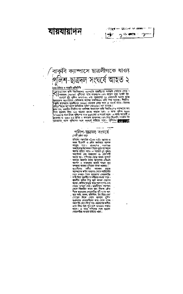 পুলিশ-ছাত্রদল সংঘর্ষে আহত ২