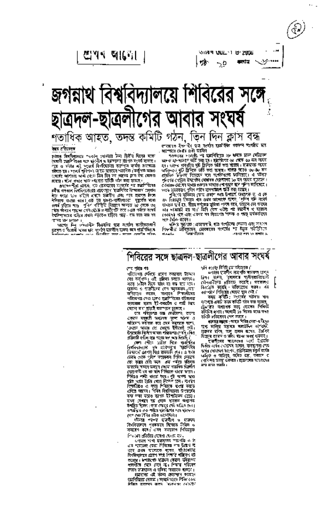 জগন্নাথ বিশ্ববিদ্যালয়ে শিবিরের সঙ্গে ছাত্রদল-ছাত্রলীগের আবার সংঘর্ষ Published on Newspaper দৈনিক প্রথম আলো Category Student Politics Download