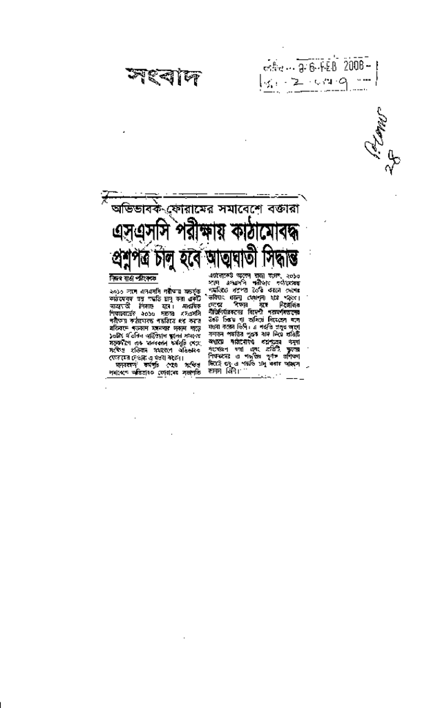 এসএসসি পরীক্ষায় কাঠামোবদ্ধ প্রশ্নপত্র চালু হবে আত্মঘাতী সিদ্ধান্ত Published on Newspaper দৈনিক সংবাদ Category Others Download