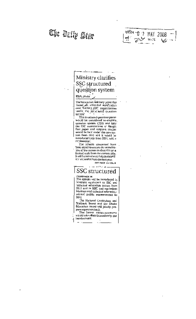 Ministry clarifies SSC structureed question system Published on Newspaper The Daily Star Category Public Examination Public Examination SSC Download