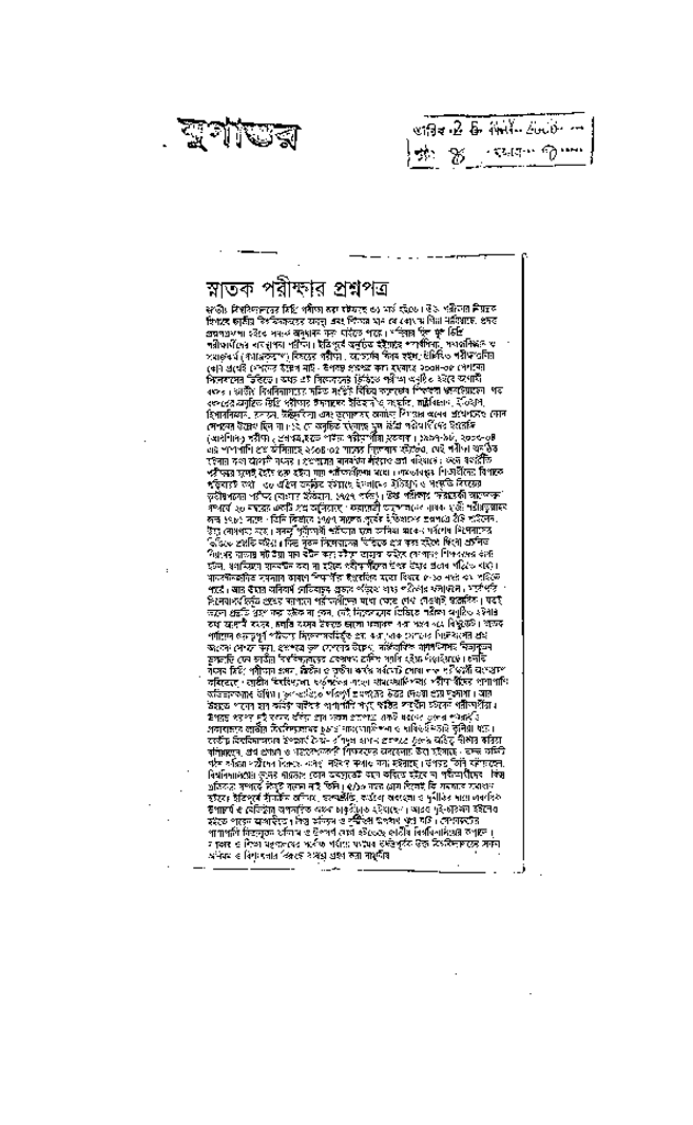 স্নাতক পরীক্ষার প্রশ্নপত্র Published on Newspaper দৈনিক যুগান্তর Category Public Examination Public Examination Higher Education Download