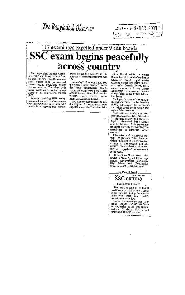 SSC exam begins peacefully across country Published on Newspaper The Bangladesh Observer Category Public Examination Public Examination SSC Download