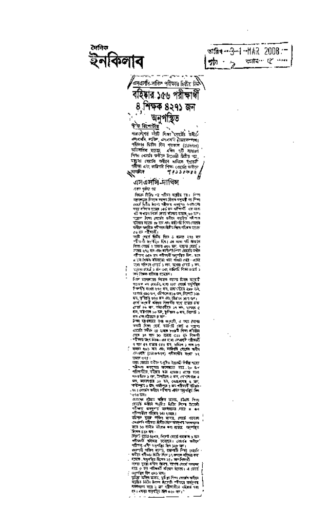 বহিষ্কার ১৫৬ পরীক্ষার্থী ৪ শিক্ষক ৪২৭১ জন অনুপস্থিত Published on Newspaper দৈনিক ইনকিলাব Category Public Examination Public Examination SSC Download