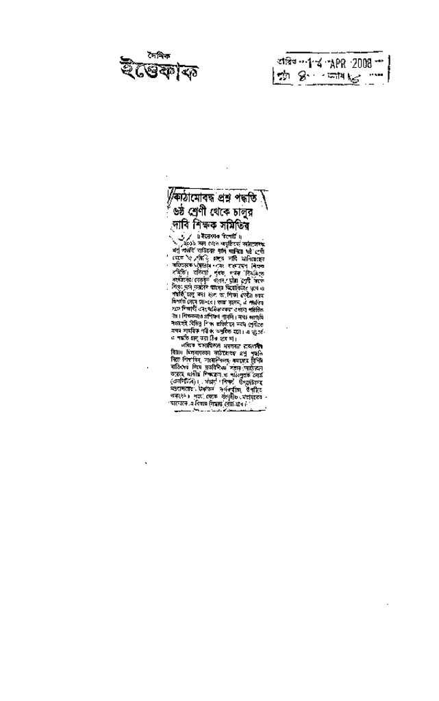 কাঠামোবদ্ধ প্রশ্ন পদ্ধতি ৬ষ্ঠ শ্রেণী থেকে চালুর দাবি শিক্ষক সমিতির Published on Newspaper দৈনিক ইত্তেফাক Category Others Download