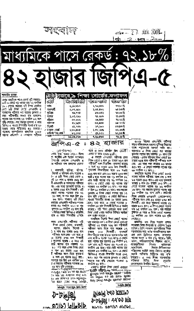 মাধ্যমিকে পাসের হার ৭২.১৮%, ৪২ হাজার জিপিএ-৫ Published on Newspaper দৈনিক সংবাদ Category Public Examination Public Examination SSC Download