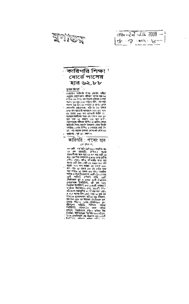 কারিগরি শিক্ষা বোর্ডে পাসের হার ৬২.৮৮