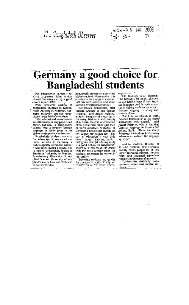 Germany a good choice for Bangladeshi students Published on Newspaper The Bangladesh Observer Category Others Download