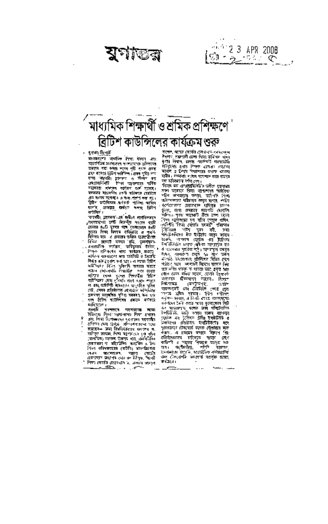 মাধ্যমিক শিক্ষার্থী ও শ্রমিক প্রশিক্ষণে ব্রিটিশ কাউন্সিলের কার্যক্রম শুরু Published on Newspaper দৈনিক যুগান্তর Category Others Download
