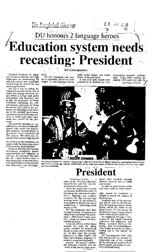 Education system needs recasting: President Published on Newspaper The Bangladesh Observer Category Personal Opinion / Discussion / Commentary Download