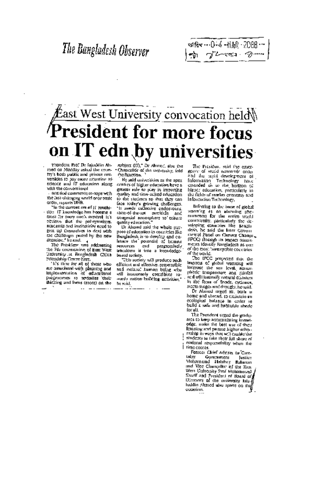 President for more focus on IT edu by universities Published on Newspaper The Bangladesh Observer Category ICT Education Download