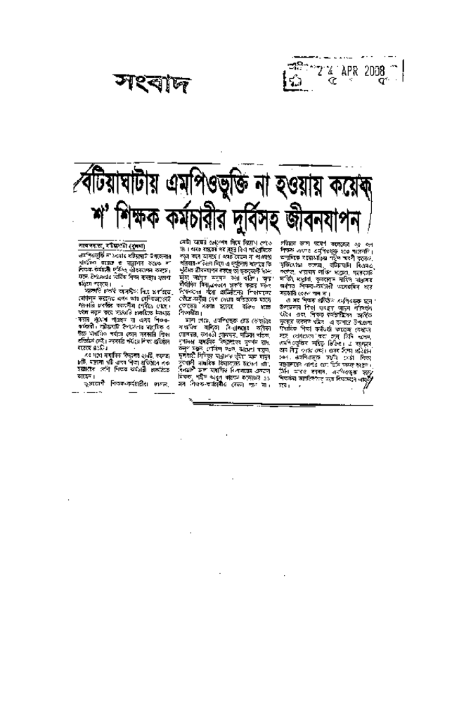 বটিয়াঘাটায় এমপিওভূক্তি না হওয়ায় কয়েক’শ শিক্ষক-কর্মচারীর দুর্বিসহ জীবনযাপন Published on Newspaper দৈনিক সংবাদ Category Others Download