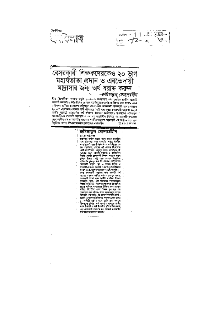 বেসরকারি শিক্ষকদেরকেও ২০ ভাগ মহার্ঘভাতা ও এবতেদায়ী মাদ্রাসার জন্য অর্থ বরাদ্দ করুন Published on Newspaper দৈনিক ইনকিলাব Category Personal Opinion / Discussion / Commentary Download