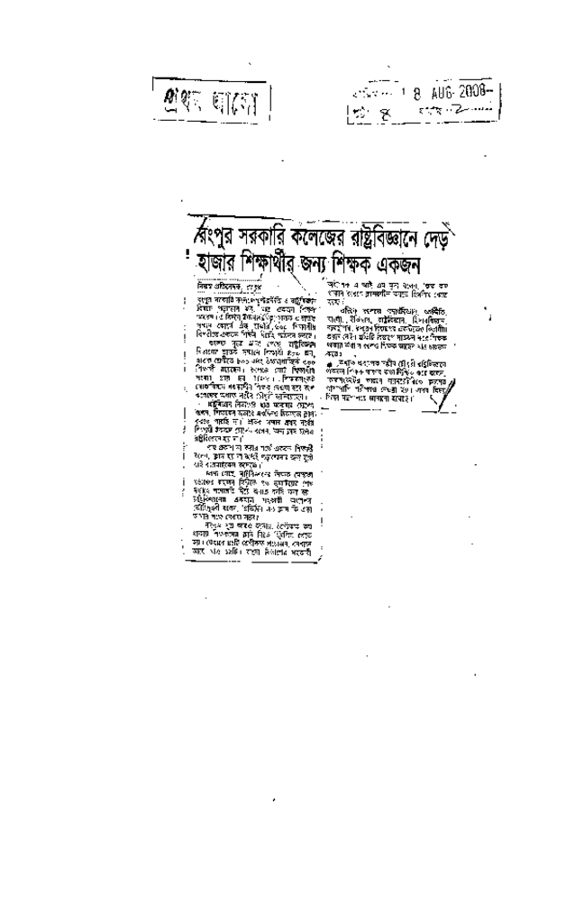 রংপুর সরকারি কলেজের রাষ্ট্রবিজ্ঞানে দেড় হাজার শিক্ষার্থীর জন্য শিক্ষক একজন Published on Newspaper দৈনিক প্রথম আলো Category General Education General Education Higher Education Public Download